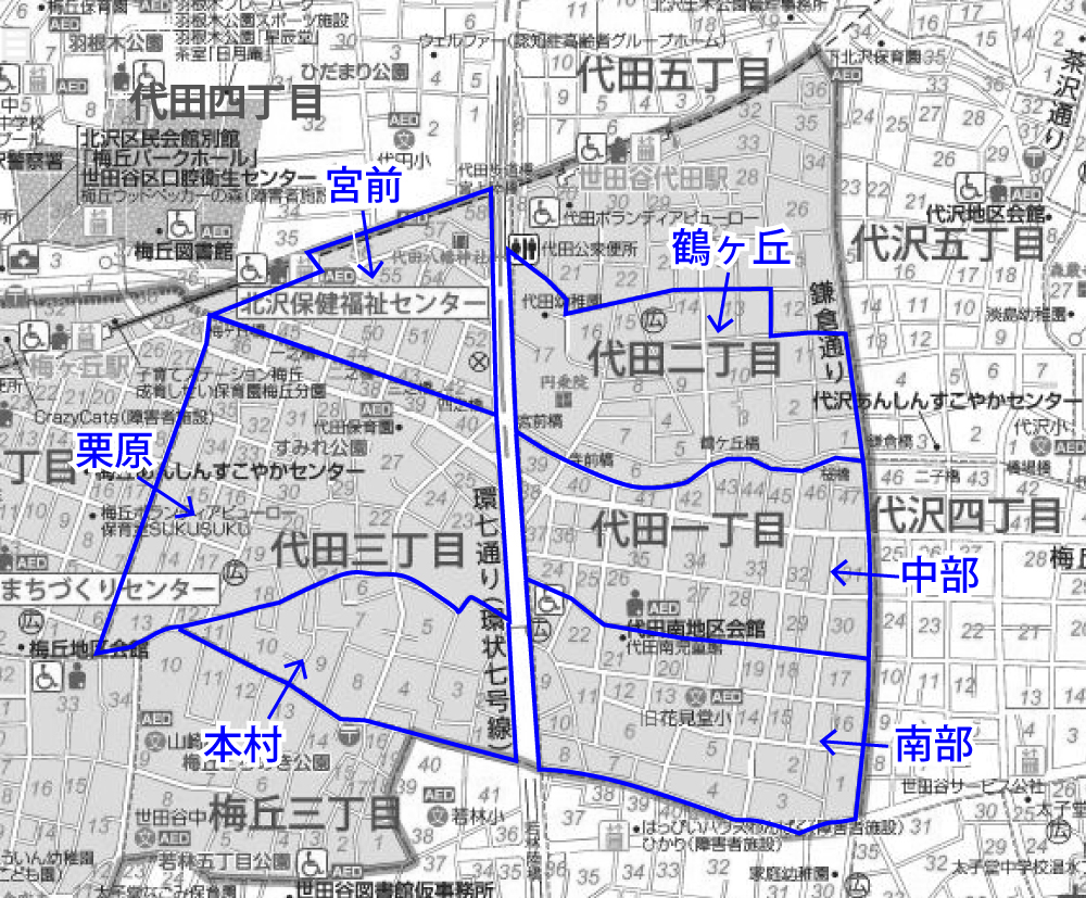 宮前:3丁目36~58 栗原:3丁目12~22および27~35 本村:3丁目1~11および23,24,25,26
