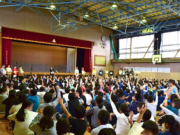自治会主催の○×ゲームの模様。みんな元気に手が挙がりました。